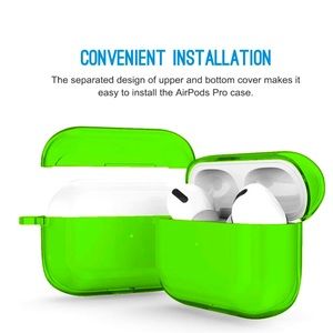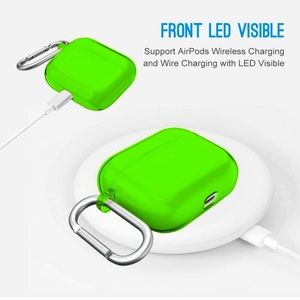 NWOT This is an absolutely gorgeous Chartreuse Green colored, Apple AirPods Pro, With Wireless Charging Case, Protective Case! This case is made to work with a fast wireless charging device, w/o removing the Case! This Case, also features a Silver Carabiner, so you can easily attach it to anything! Plus, this Case also comes with a Black Carrying Zippered Pouch! If you have Apple Air Pods Pro, you can now both protect and personalize them with this gorgeous Case!