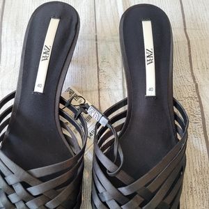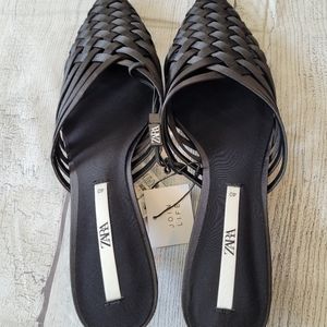 Zara •Size 40 (US 9)• Black Point Toe Weaved Kitten Mule ☆New w/ Tags☆ Zara shows run a bit narrow in my opinion, so If your feet are wide these won't work. Brand new. Cross posted. I ship out same or next day. Thanks for looking!