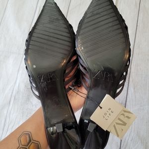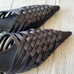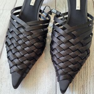 •SOLD• Zara Black Weaved Point Toe Kitten heel Mule Size 9 •New w/ Tag•