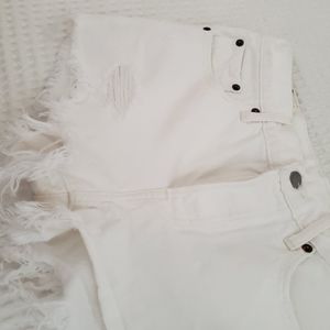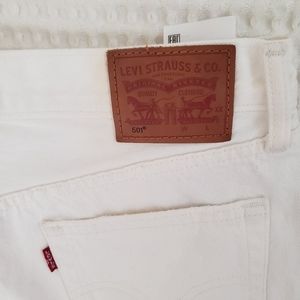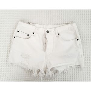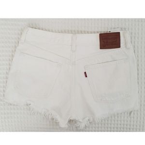 LEVI'S white denim 501 button fly distressed frayed mini shorts 27