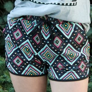 Shorts with diamond print, elastic band, and drawstring front tie