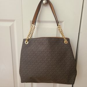 Michael Kors Chain Tote Bag – NWT Brown MK Logo Gold Hardware Shoulder Purse
