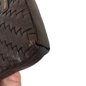 Cole Haan woven brown leather cross body bag with magnetic closure