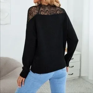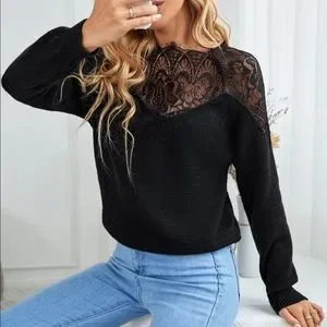 Comfy Sheer Mesh Lace Sleeve Sweater Top Black Sexy