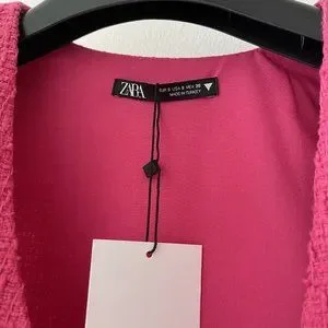 NWT ZARA NEW WOMAN SS22 FUCHSIA TEXTURED Weave CROP TOP 4661 Sz Small Tweed