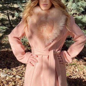The Classic Fuax Fur Trimmed Trench Coat Pink