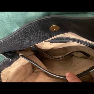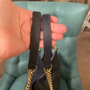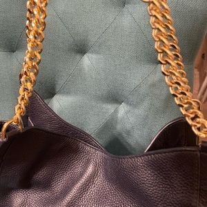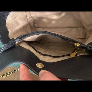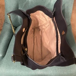 Michael Kors Newbury Pebbled Leather Chain Tote Bag dark navy EUC