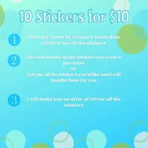 - All the stickers in my closet right now are 10 for $10 so if you're interested pick out 10 stickers and bundle them together or tell me which ones and I'll do that for you