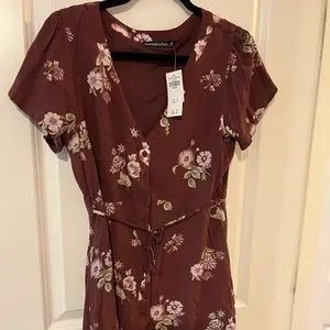 This floral skater dress is lightweight and soft. Size Medium. Never worn and still has tags. Buttons down the front and tie at waist.