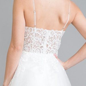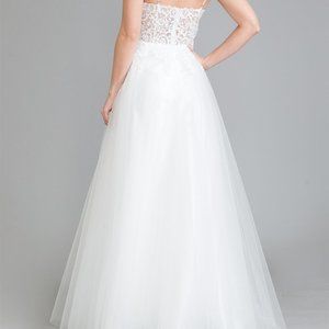 WEDDING BRDAL LONG MAXI White Sweetheart Neck Lace Bodice Prom Dress 010