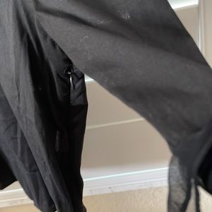 Beautiful alice+olivia black long sleeve Renaissance lace sleeve blouse! The base of the top is linen, sleeves and neckline are lace. Neckline is mock turtle neck height. Button/snap up the back and zipper on side for easy on/off. The top is solid black but can be sheer in the daylight. I have also worn this with the buttons on the front! One snap base needs replacement on 3rd button (but if worn up the back cannot be seen with long hair!)