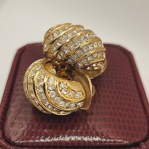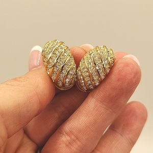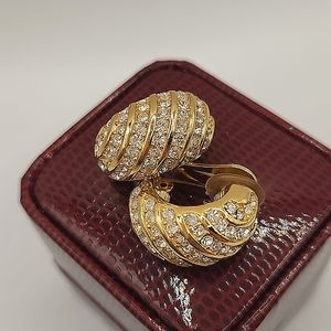 Dior Vintage Pave Crystal Huggie Clip-On Earrings.