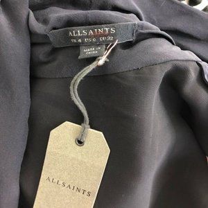 AllSaints Nast Dress Ink Blue Silk Wrap Cross Over Slit Sheath