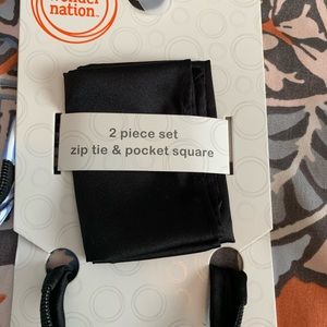 2 pack ..black zip tie & pocket square & baby blue & white stripe zip tie. Boys one size fits all.
