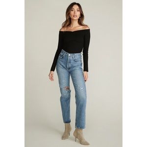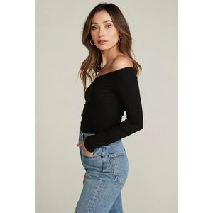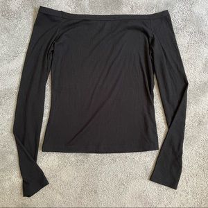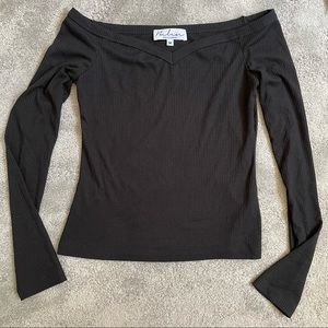 Belen Black Stella Ribbed Long Sleeve Off the Shoulder V-Neck Top EUC Size M