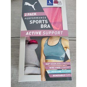 New Puma Woman’s Performance 2-Pack Active Support Wicking Sports Bra LARGE,NWT