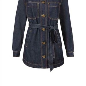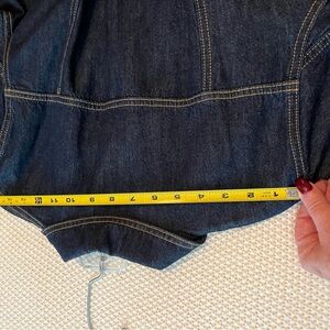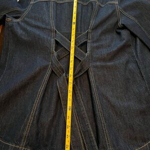 Cute denim jacket that is hip length. It can be belted in the front or tied to the back. Interesting lace up feature in the back. Excellent condition, only worn once.