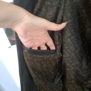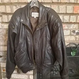 Bomber style leather jacket with 4 pockets - 2 inside, 2 outaide. The shoulder zippers are aesthetic.