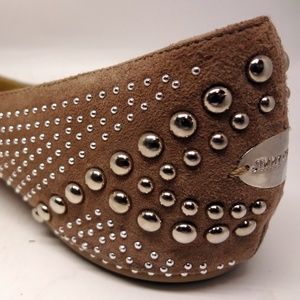 JIMMY CHOO Latte Taupe Suede Studded Flats 40.5