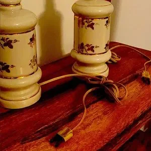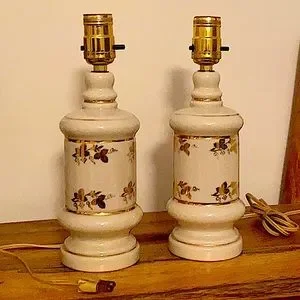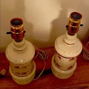 Beautiful pair of lamps. Ivory with gold detailing. Excellent used condition. No damages, fully functional. Selling the pair together. Bulbs are not included, just used to show that lamps work. Priced high because these are very rare and unique. Make an Offer!