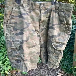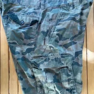 Amazon Essentials Mens olive green camo cargo shorts size 40. 9” inseam. 100% cotton. Minor imperfections. (see photos). Classic fit.