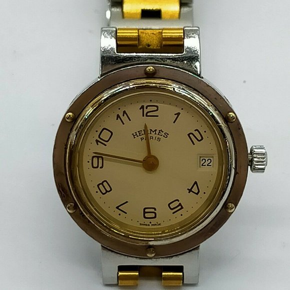 Hermes Watch Clipper operates normally 24mm Women's Cream X Gold