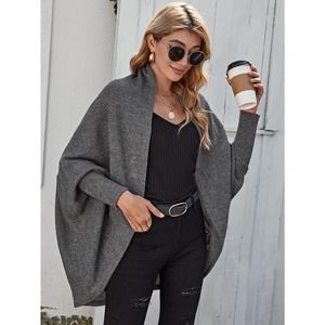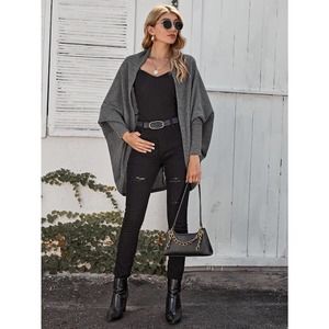 Open Front Dolman Sleeve soft knit cardigan oversized charcoal dark gray