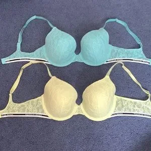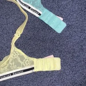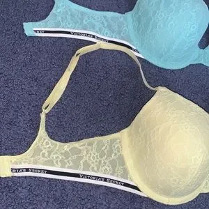 2 Victoria’s Secret bras. In good condition. The blue one was worn once, the yellow one was worn a little bit more