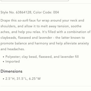 NWT, Anthropologie, Luxe faux fur therapeutic neck wrap.
