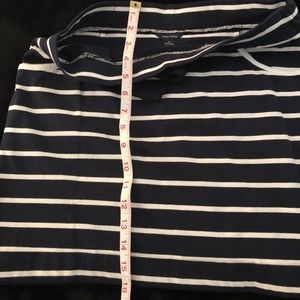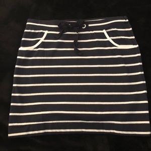 Nautica navy and white stripe knit skirt. Elastic waistband with bow tie. Pockets on front.
