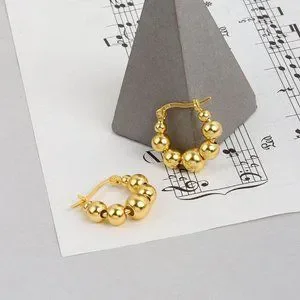 #NEW 925 Sterling Silver Bead Round Hoop Earrings