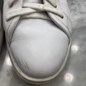 Heavy wear and tear. These sneakers were LOVED. They still have some life left into them. I’ve cleaned them but I think will a good toothbrush and bleaching the laces, they can be even better and have a second life.