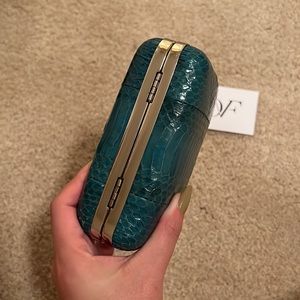 Add a bright pop of color to your night-out look with this Diane von Furstenberg hard-shell clutch.