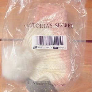 New with Tags. Soft and classy warm hat for winter. From the 2020 Holiday selection of products. No longer sold in stores. Beautiful hues of pink and white. Keep warm and spend your winter months in style from home to work to outdoor/evening events. Item removed only for pictures. One size fits most. Measurements included in pics. Made from acrylic, polyester and elastane.