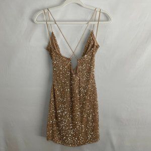 NEW retrofete X REVOLVE Mich Dress in Nude -- Glitter Gold Sequin NYE Champagne