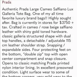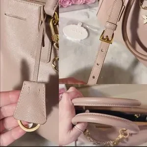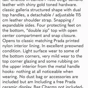 STUNNING PRADA 💕💕💕 My absolute favorite. Beautiful light pink color. In Pristine Condition. Please read the detailed descriptions up in the photos. It’s the last picture.❤️❤️❤️❤️❤️❤️❤️ Im in absolutely no hurry to sale her so only a little wiggle room on price but not a lot. Fabulous PRADA Charm in another listing. Looks so classy together- 🌹 TV for bag alone $3000 offers Welcome and if you purchase bag & the charm I’ll give bundle discount. Offers via the offer button only please. Thx! ❤️❤️❤️