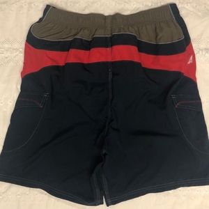 Brand New with tags Men's Bathing Suit - Sun Sports by Alpine - XXL/XXXL but looks like a L or XL, must be the expandable waist that makes it XXL/XXXL. - Black with Red, Brown and Gray Stripes