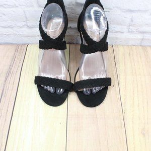 Torrid Black Fabric Braided Strap Cone Heel Sandals Size 7 Wide