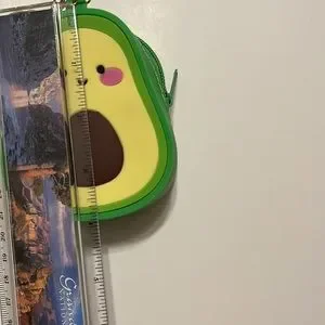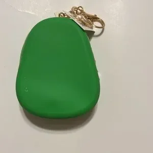 Cute key ring or purse charm can hold small items on the inside has a zipper can be clipped in purse or back pack