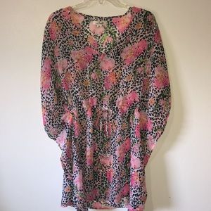 2/$20 Sale Simply Noelle Sheer Pink/Black Flowered Cover Up or Tunic S/M