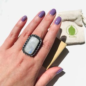 Rainbow Moonstone gem stone crystal rectangular Ring sterling silver 925 Size 7