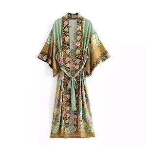 SOLD OUT Boho Peacock Feather Floral Kimono Duster Robe