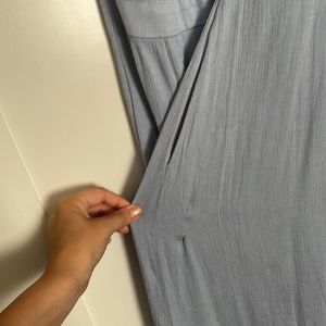 *was patched by left pocket* not noticeable when wearing as it’s Flowy and wrinkly material. I don’t see any stains. Tied halter top, would be beautiful for engagement, maternity, or family pictures photoshoot. Prairie vibes for an outdoor look or water shoot. Pockets with flower lace detail down the front and around the bottom. Lined to around the knees. Measurements in pics.