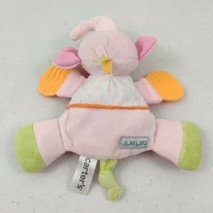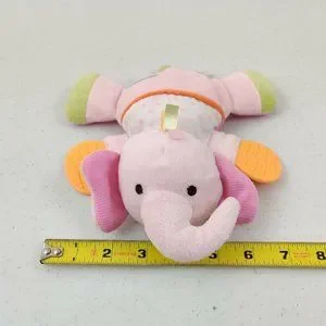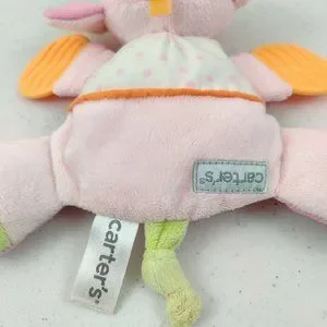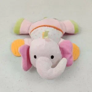 Carters Plush Elephant Baby Toy Pink Rattle Teether Crinkle Flat