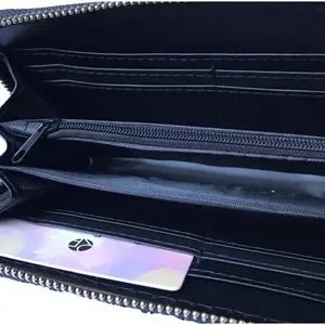 Add a touch of elegance and glam to your outfit with these adorable wallets featuring a zippered closure, many credit card slots, zippered coin compartment, sparkly glitter, gold tone zippered handle with zipper and very spacious for a wallet.