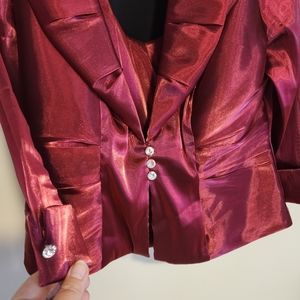 Ladies Dress Barn burgundy special occasion jacket with zippered matching camisole. Worn once, perfect with black silky pants or skirt for a reception or holiday party.