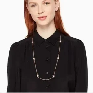💖KATE SPADE Lady Marmalade Diamond Crystal Statement Scatter Long Necklace Rose