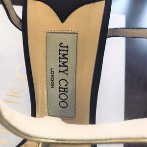 Jimmy Choo Glamorous Black Towering Stilettoes with Gold Straps Size 9.5