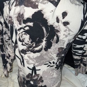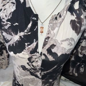 Express sweater /shirt cover up with pretty rhinestones on it and even on the sleeves . Very classy and elegant shirt . Can be used for many occasions:) this was my mom she passed away so anything that I make from her stuff goes towards her funeral cost! I’d be greatly appreciated she has some really nice stuff 🦋🤍 Size small .. Could fit a medium too it’s stretches