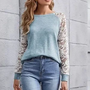Floral Lace Sheer Sleeve Top